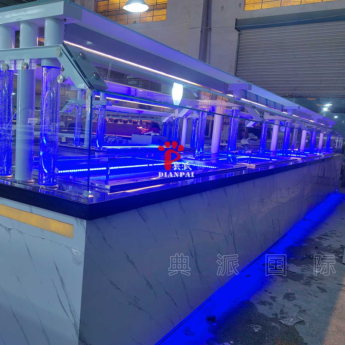 这款展示的,就是典派国际为美国餐厅定制的布菲台冷台款式。页面所看到的图片,全部来自典派国际生产车间现场实拍,不是效果图,也不是样板间,而是真正已经进入制作阶段、即将发往美国餐厅使用的产品。
