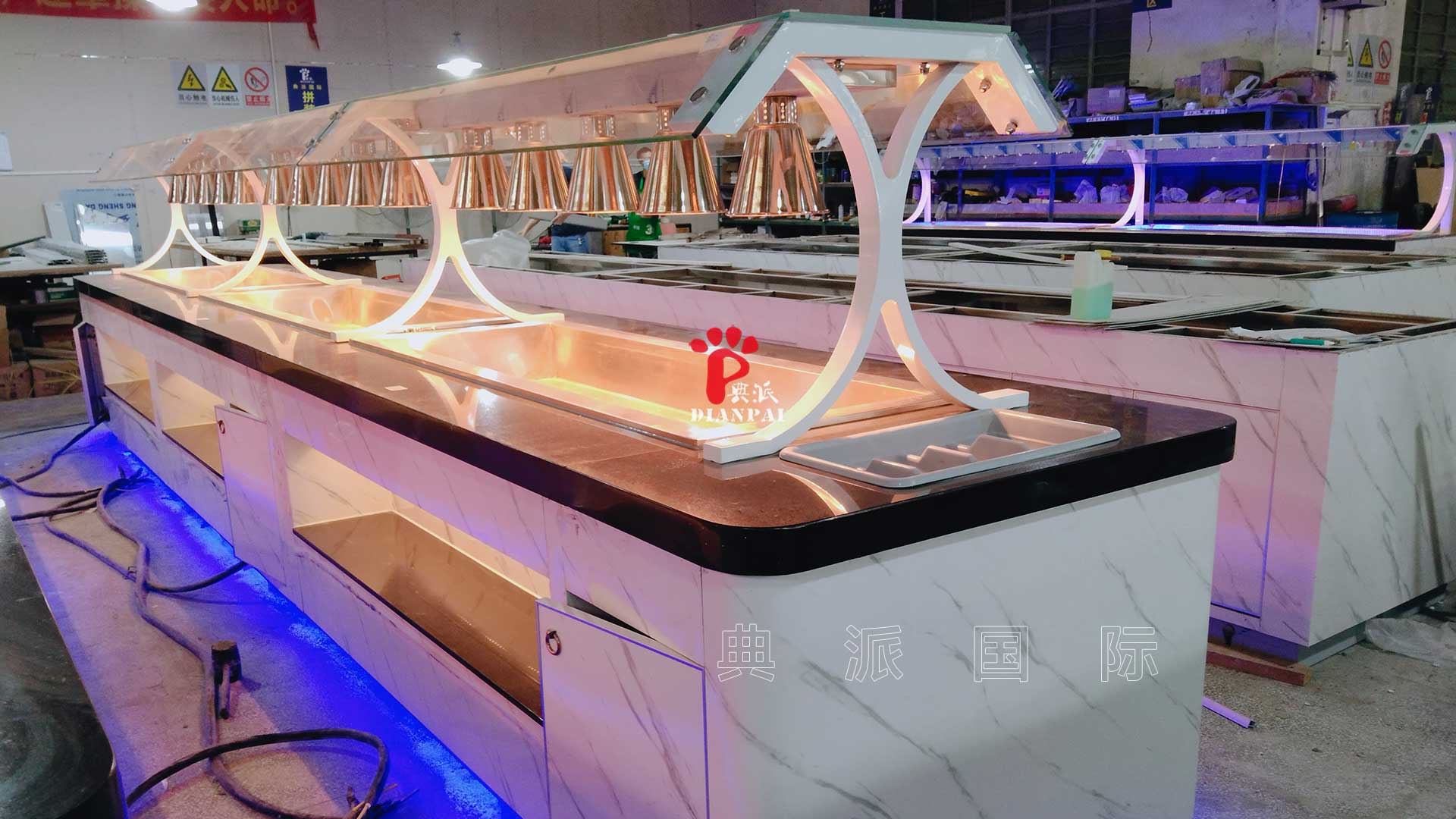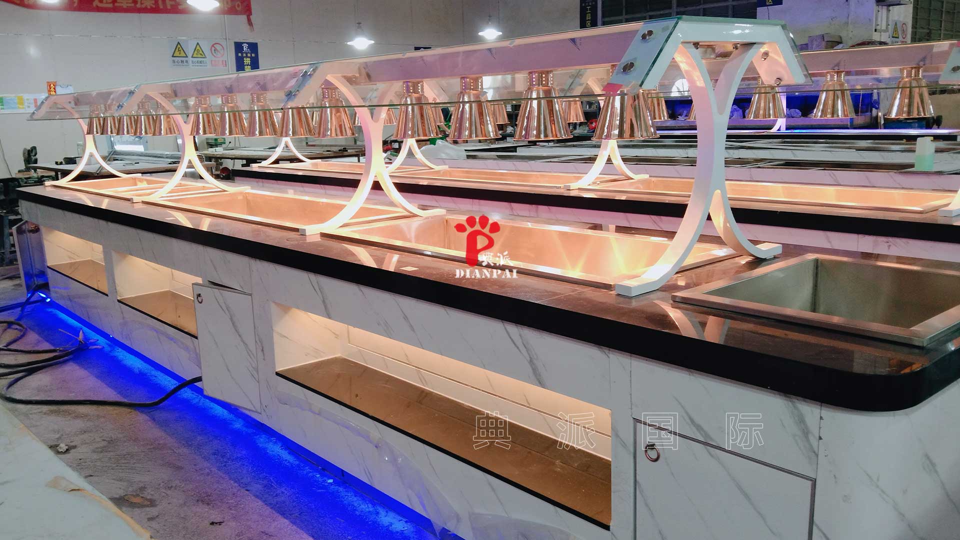 值得一提的是,典派在全球自助餐台定制领域拥有丰富的出口经验,特别是在北美市场积累了大量成功案例。无论是酒店自助餐、高端餐厅还是主题餐厅,典派都能根据客户需求提供个性化方案。从设计、生产到运输安装,每一个环节都严格把控,确保餐厅能够快速投入运营,无需担心设备适配或使用问题。在华盛顿州这一项目中,典派团队不仅提供了高质量的餐台,还根据客户需求进行现场安装指导,确保每个细节都达到预期效果。