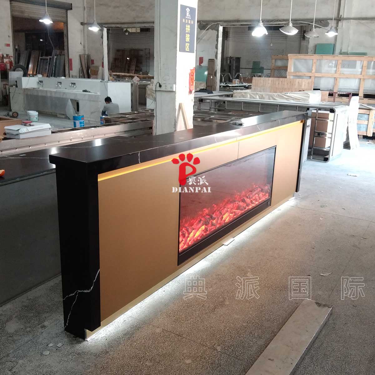 典派在吧台定制方面拥有丰富经验,可以根据餐厅空间尺寸、经营类型以及整体风格进行调整。例如,有些餐厅更强调酒吧氛围,酒吧台设计会加入灯光展示区、酒瓶陈列区以及操作台空间;有些餐厅则更注重接待功能,那么餐厅接待台与迎宾台就会更突出形象展示与顾客沟通区域。而在实际运营中,收银台与服务台往往也需要与吧台进行合理结合,使餐厅员工的工作动线更加顺畅。