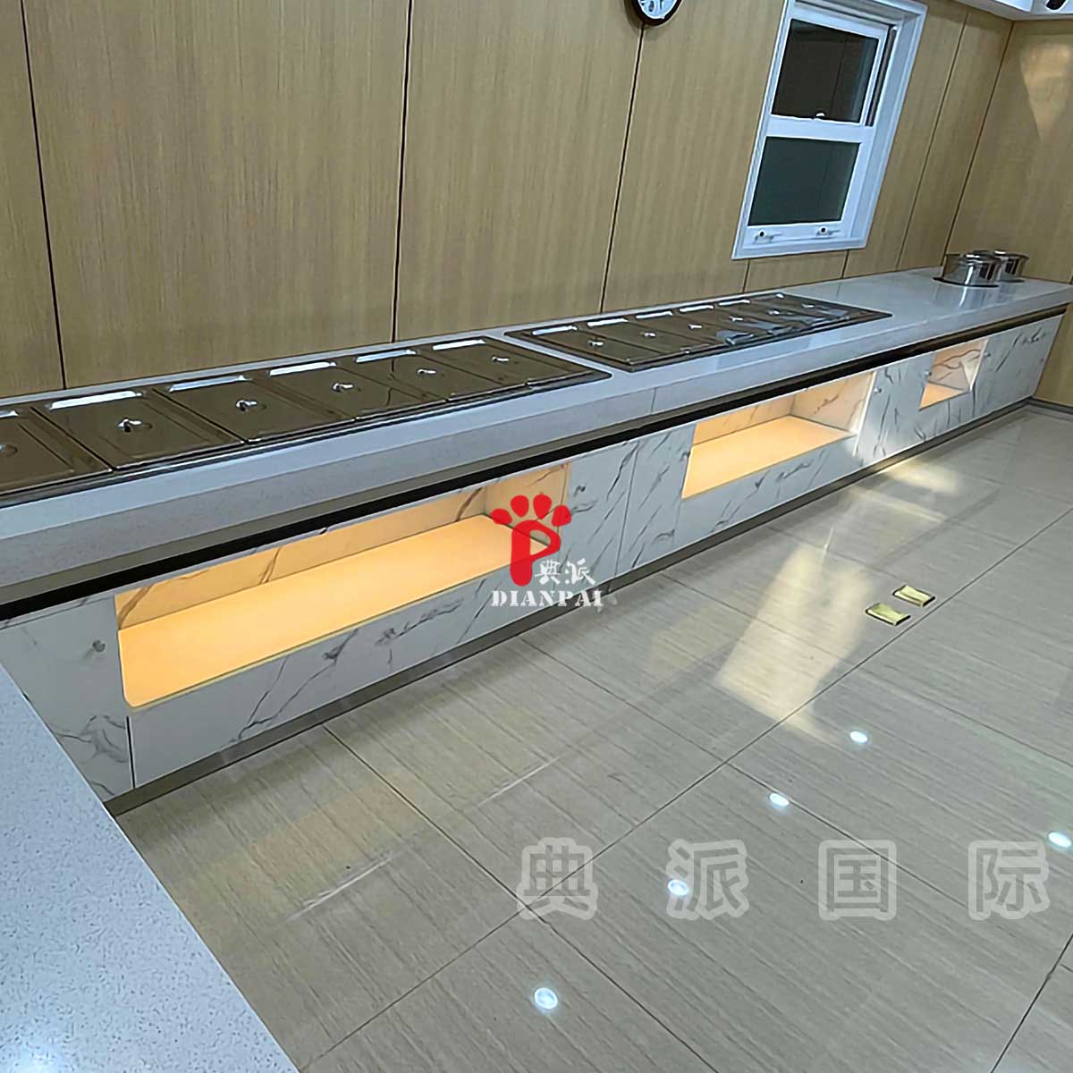针对这些痛点,典派国际提供了一套靠墙式单位自助餐台定制方案,既提升空间利用率,又兼顾职工取餐体验和食堂管理便捷性。