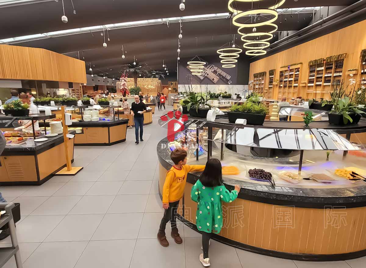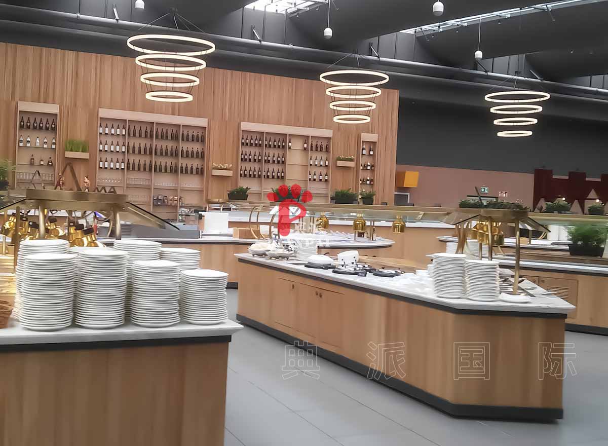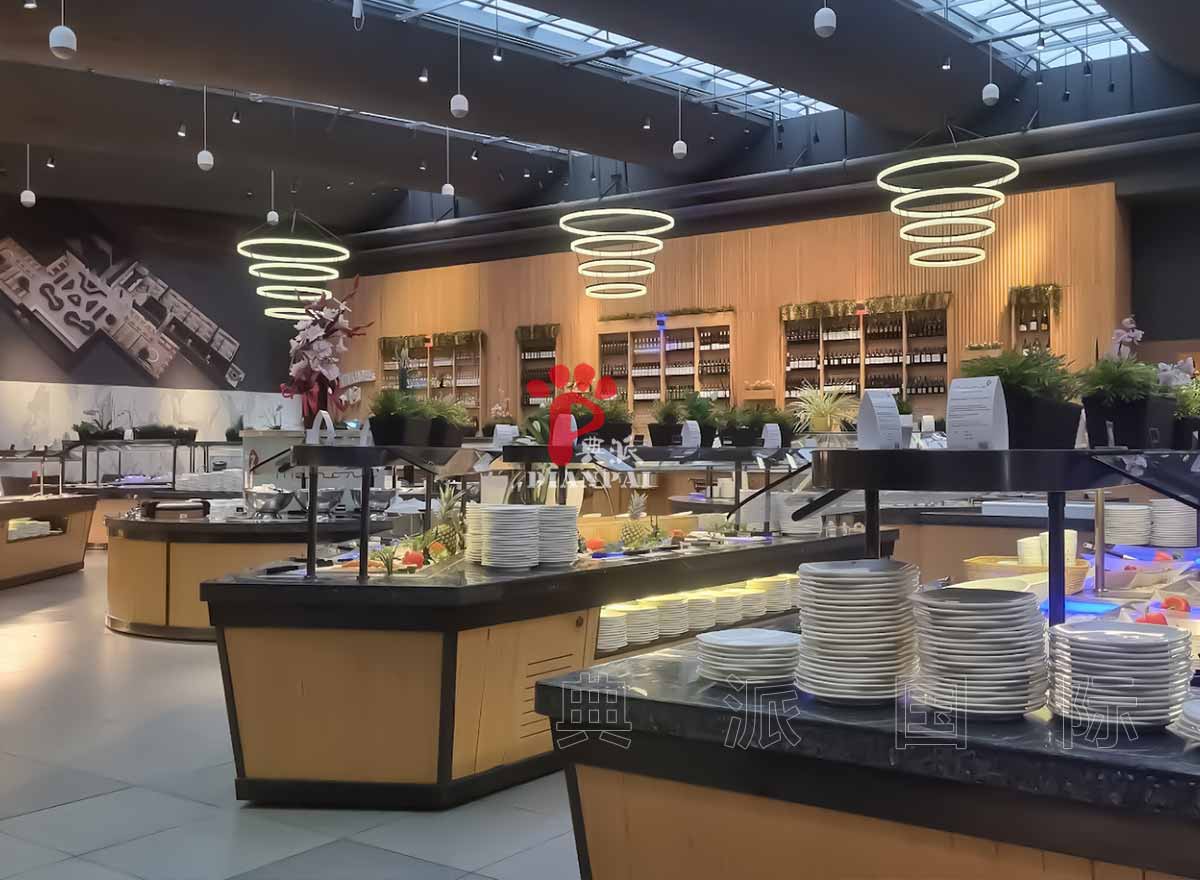 自助餐台不仅是展示食物的地方,更是餐厅运营的关键。热菜区域需要保温灯或热台,冷菜区需要冷藏模块,甜品区可以设计专门的展示架和冷藏空间。典派国际的定制布菲台充分考虑顾客取餐体验与餐厅工作效率,让布菲台既美观又实用。